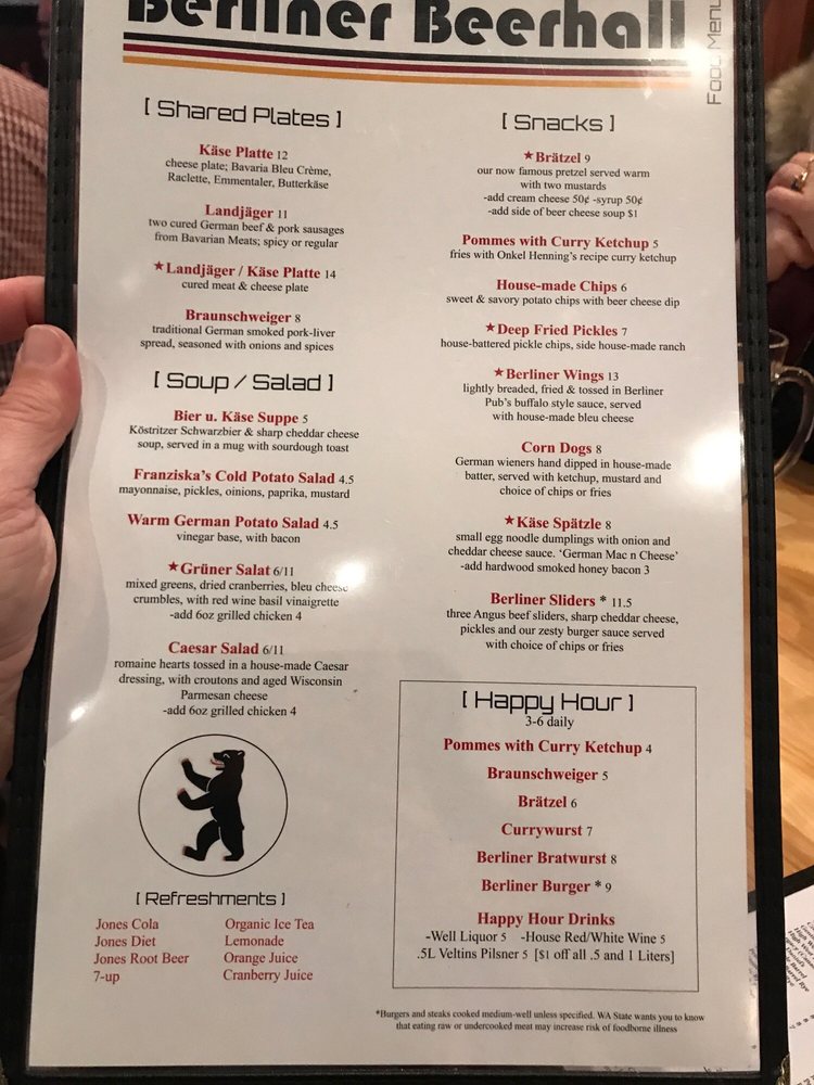 Located in Renton, WA, Berliner Pub offers a unique dining experience in a beer garden setting. With a diverse menu featuring German cuisine, the restaurant caters to vegetarians and meat-lovers alike. Notable for its impressive beer selection, including seasonal offerings like Prickly Pear and Munich Noire Shandy, Berliner Pub also serves classic cocktails. Customers praise the efficient and friendly wait staff, along with the cozy Gothic/Medieval atmosphere. House favorites like the Berliner Bratwurst and smoked cheese sausage paired with Kolsch fruh beer and Weihenstephan dunkel weiss are highly recommended. The establishment also offers happy hour specials, perfect for a casual hangout or date night. Berliner Pub stands out for its delicious food, wide beverage selection, and inviting ambiance, making it a must-visit spot for beer enthusiasts and foodies alike.